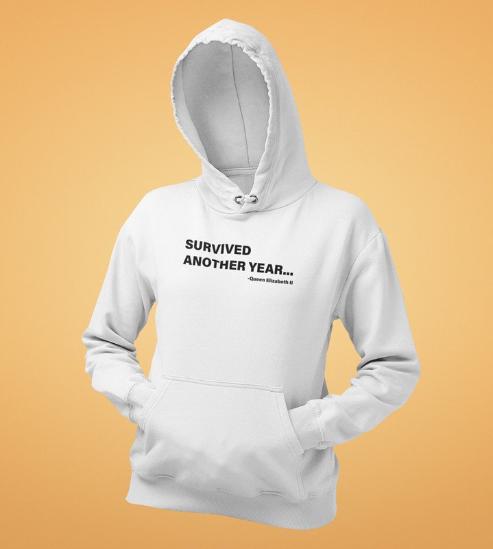 Survived New Year, White Graphic Printed Hoodies For Mens Boys