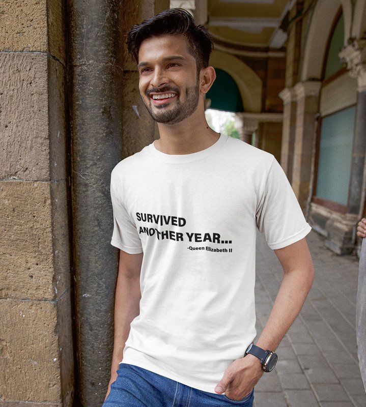 Survived New Year White Graphic Printed T-shirt For Mens Boys