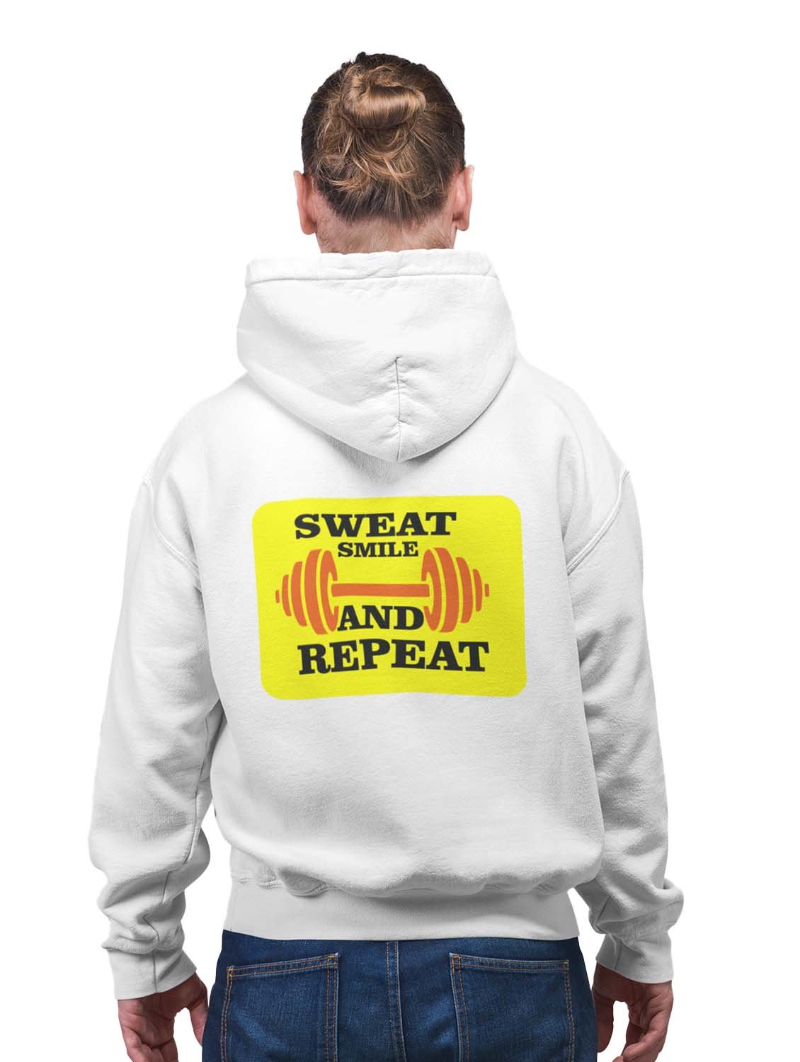 Sweat, Smile And Repeat, (BG Yellow) printed artswear white hoodies for winter casual wear specially for Men