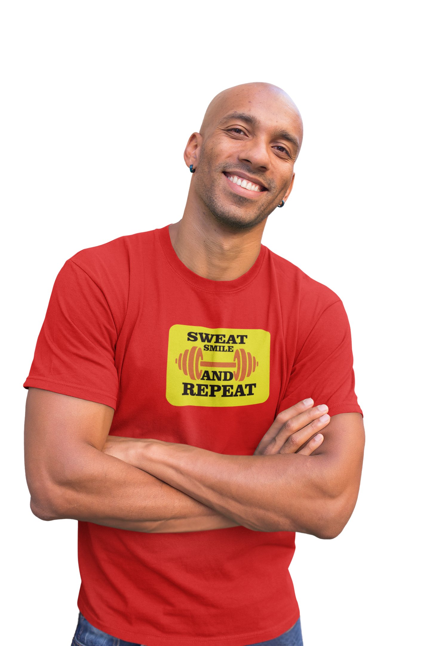 Sweat, Smile and Repeat Round Neck Gym Tshirt (Red Tshirt) - Clothes for Gym Lovers - Suitable for Gym Going Person - Foremost Gifting Material for Your Friends and Close Ones