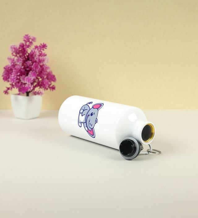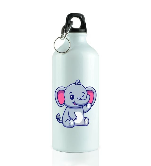 Sweet Sitting Baby Elephant Printed Aluminium Water Bottle 600ml
