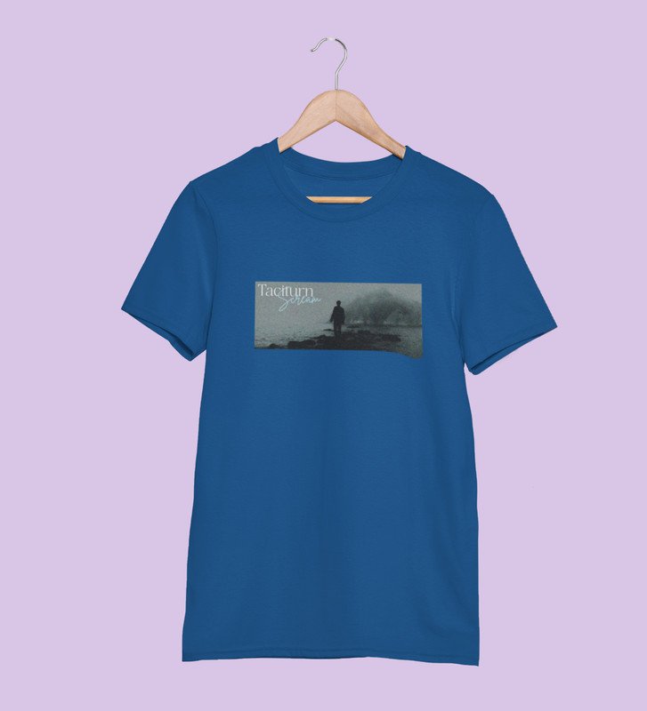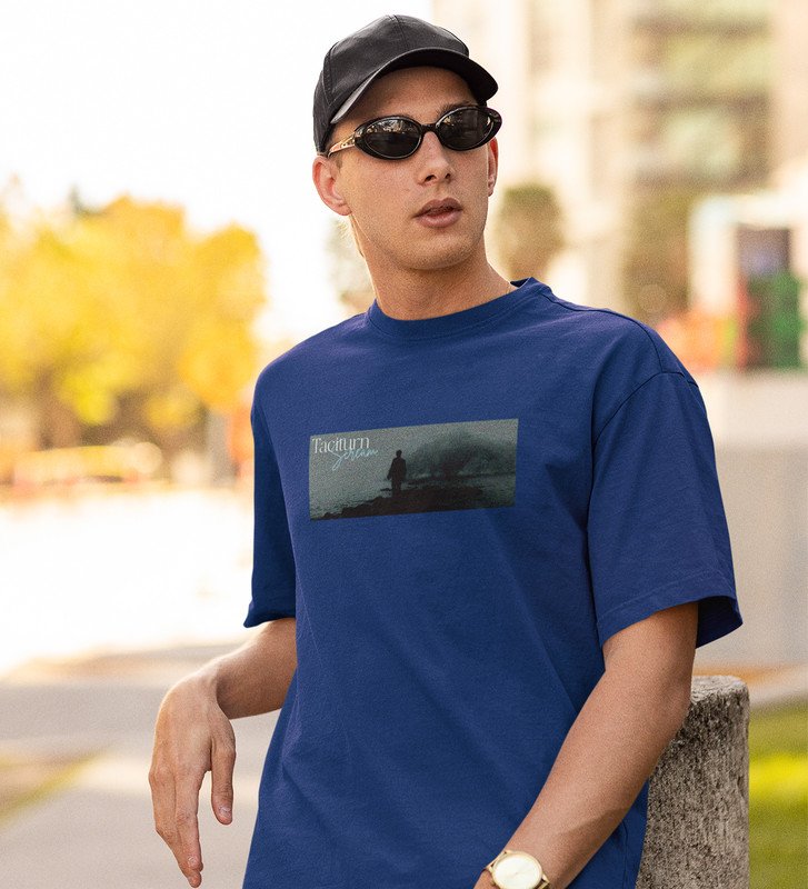 Taciturnity, Graphic Harmony: Blue Modern Front Printed Round Neck Tee for Men