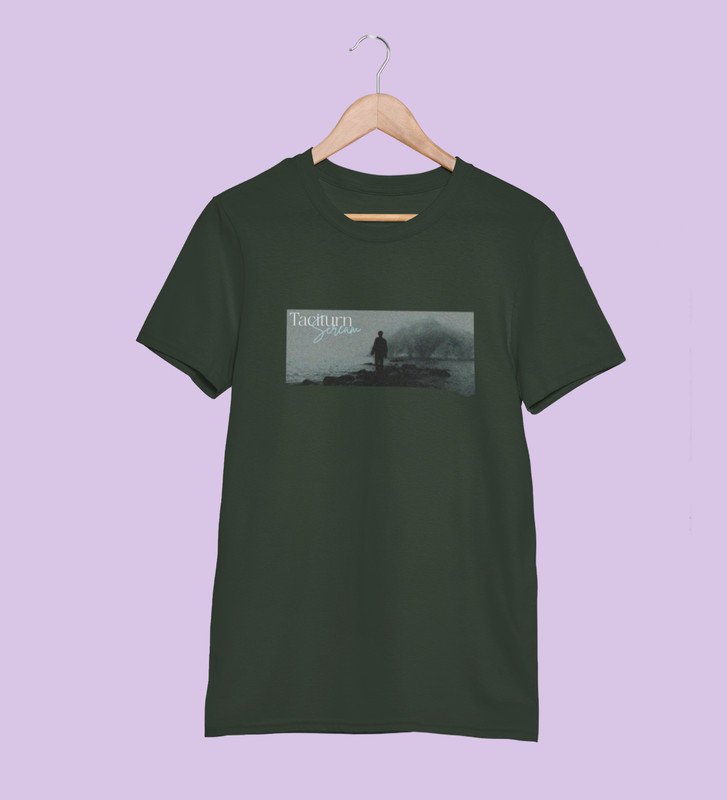 Taciturnity, Graphic Harmony: Green Modern Front Printed Round Neck Tee for Men