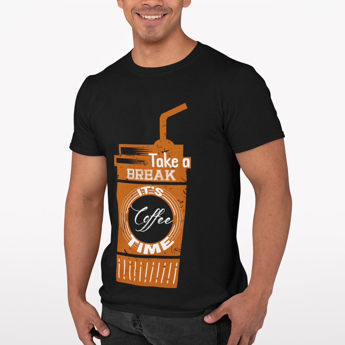 Take break its Coffee time - Black - printed t shirt - comfortable round neck cotton.
