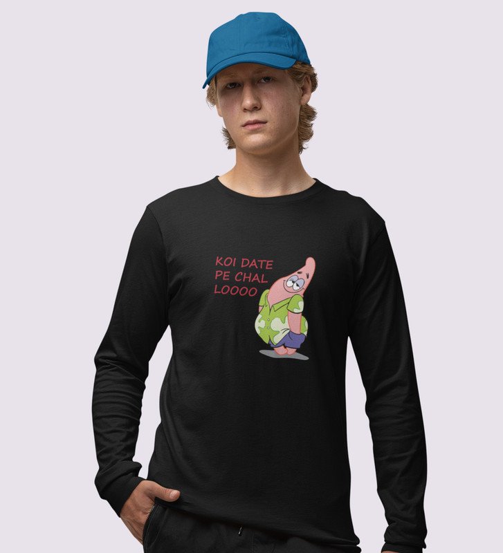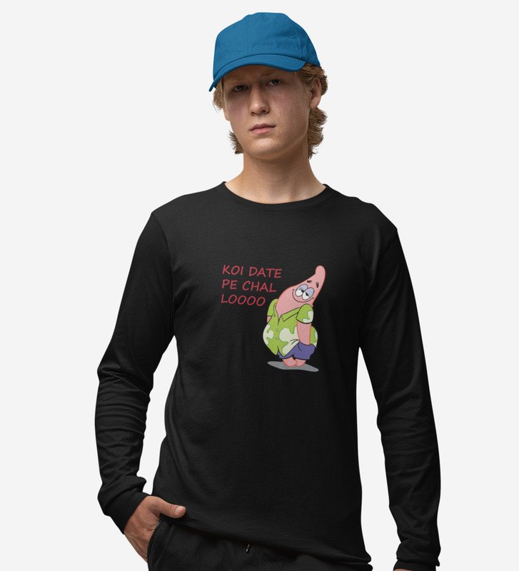 Take Me Out For Date: Attractive Printed (black) Full Sleeve T-Shirt For Singles