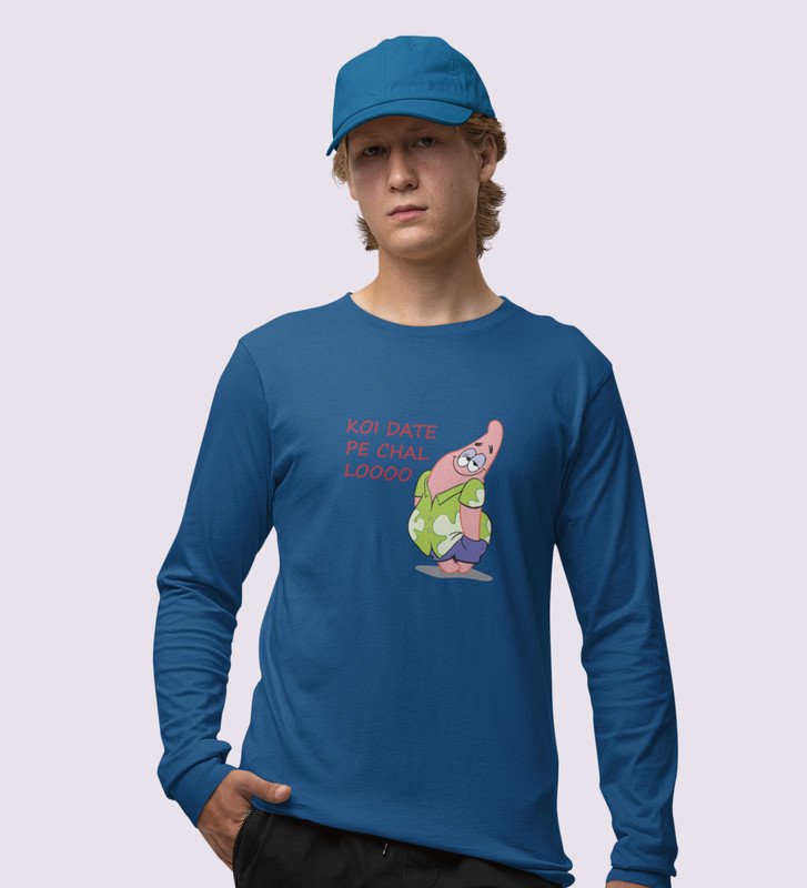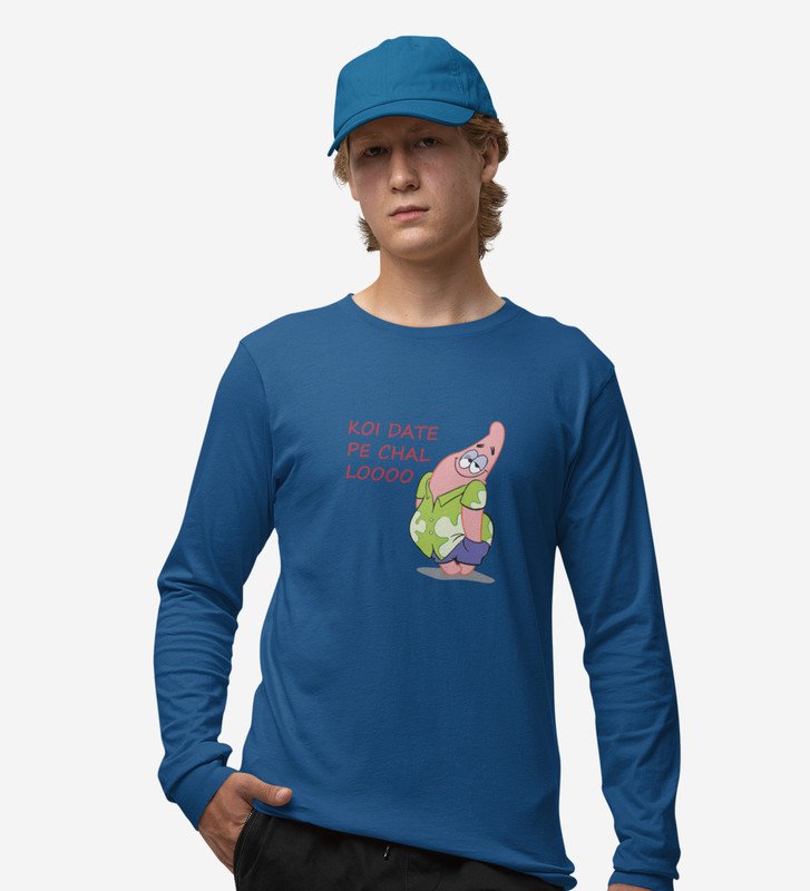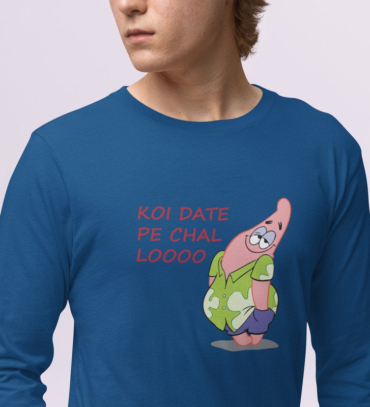 Take Me Out For Date: Attractive Printed (blue) Full Sleeve T-Shirt For Singles