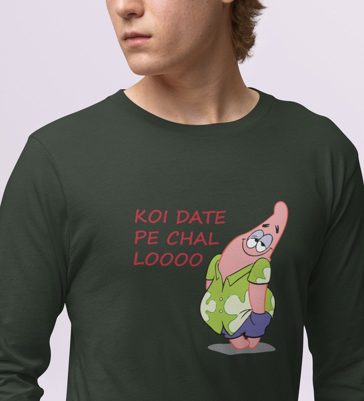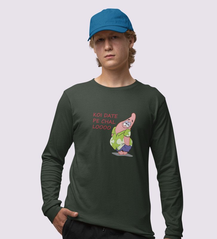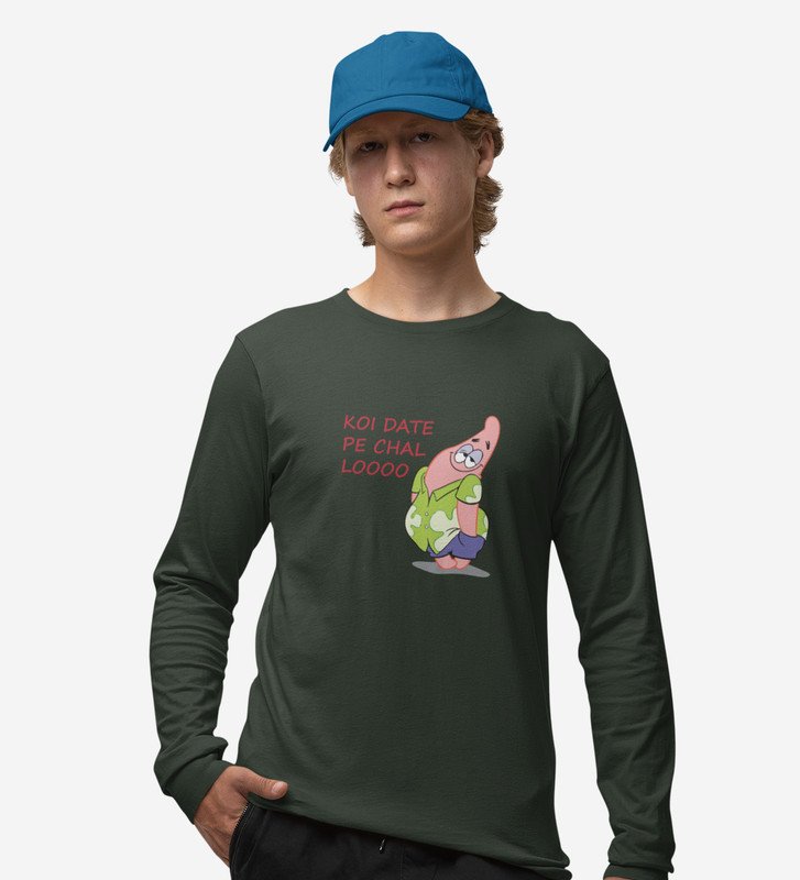 Take Me Out For Date: Attractive Printed (green) Full Sleeve T-Shirt For Singles