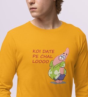 Take Me Out For Date: Attractive Printed (yellow) Full Sleeve T-Shirt For Singles