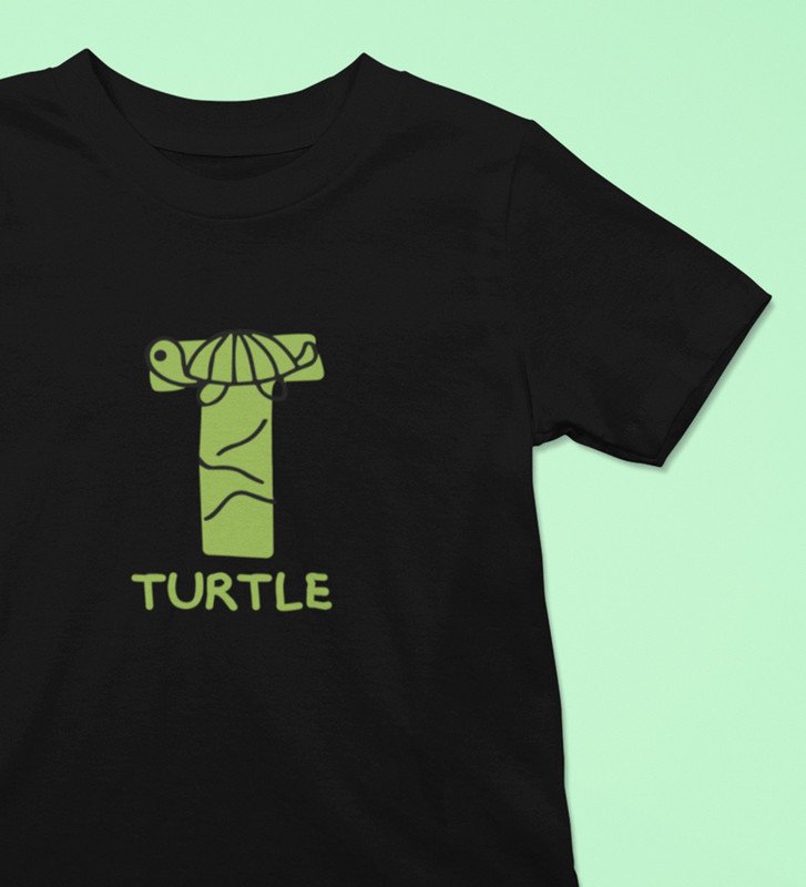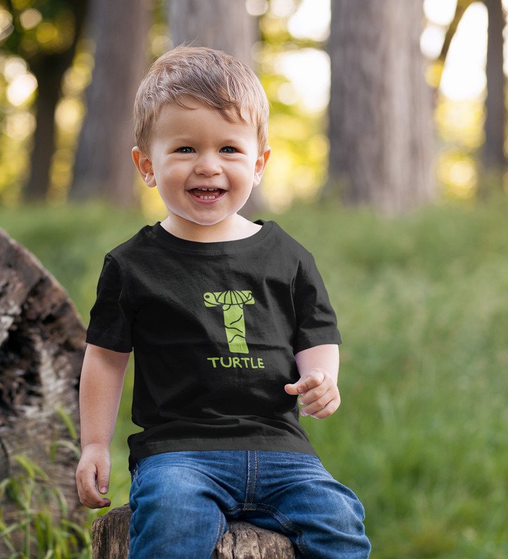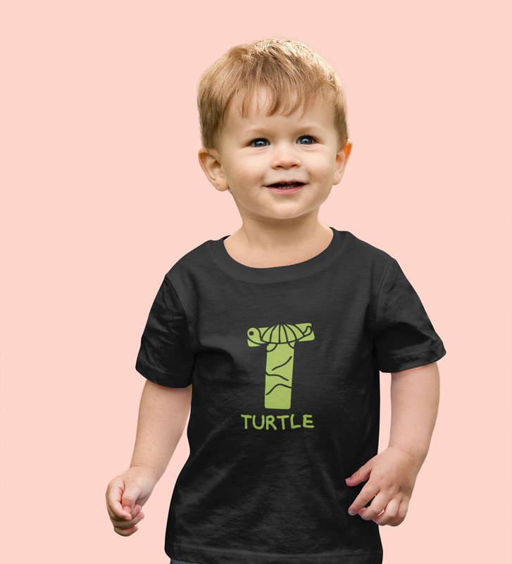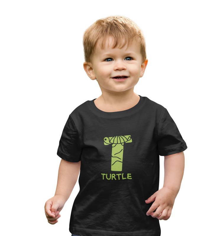 Talking Turtle, Boys Round Neck Printed Blended Cotton Tshirt (black)