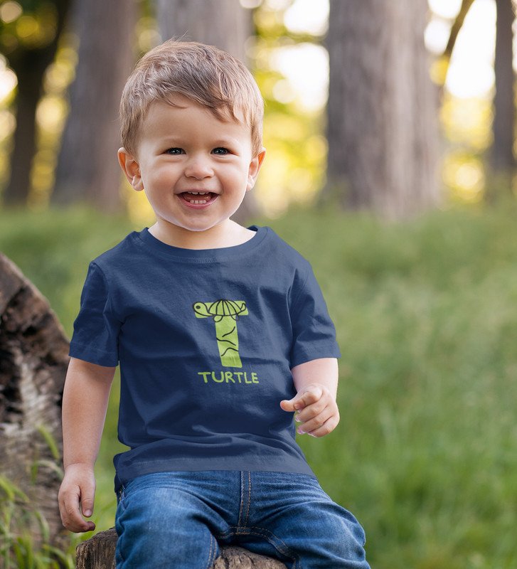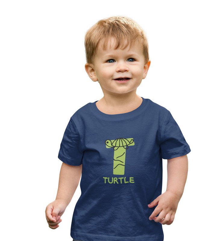 Talking Turtle, Boys Round Neck Printed Blended Cotton tshirt (Navy blue)
