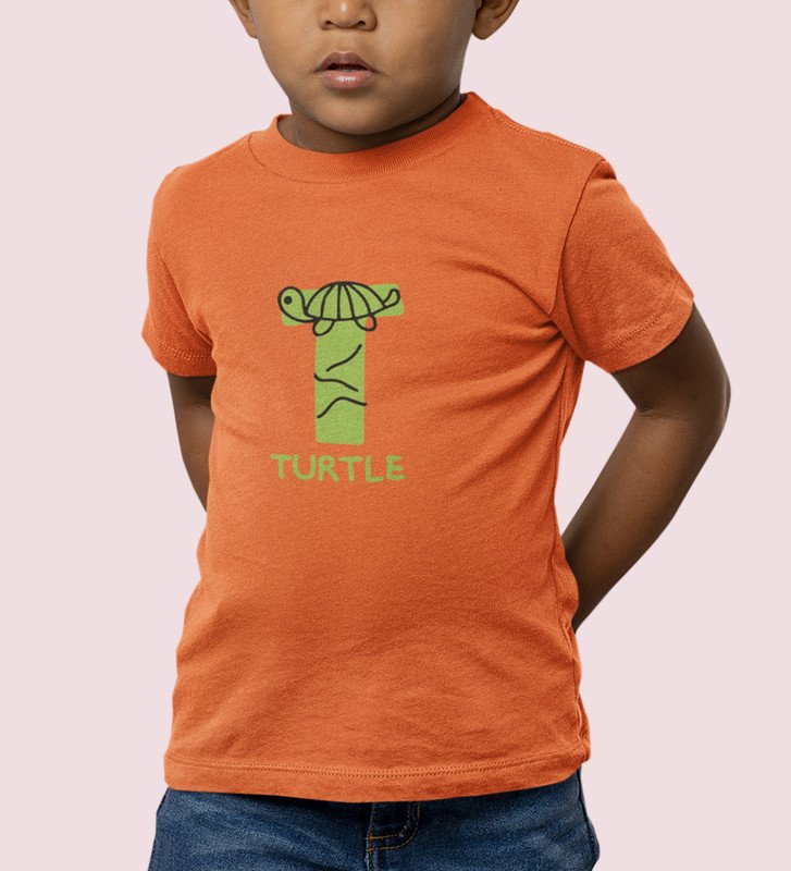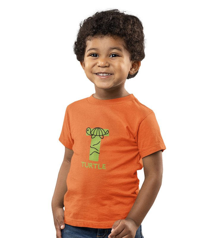 Talking Turtle, Boys Round Neck Printed Blended Cotton Tshirt (Orange)