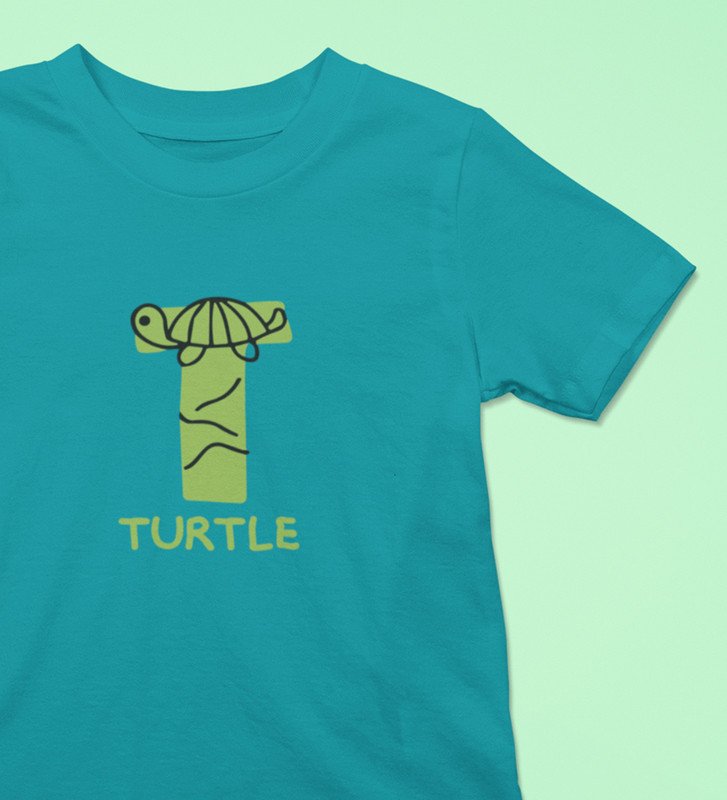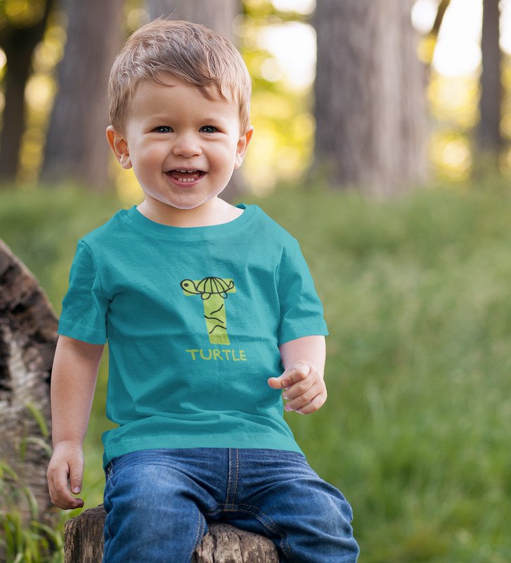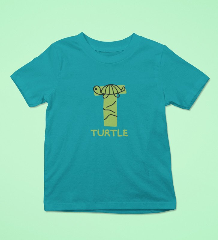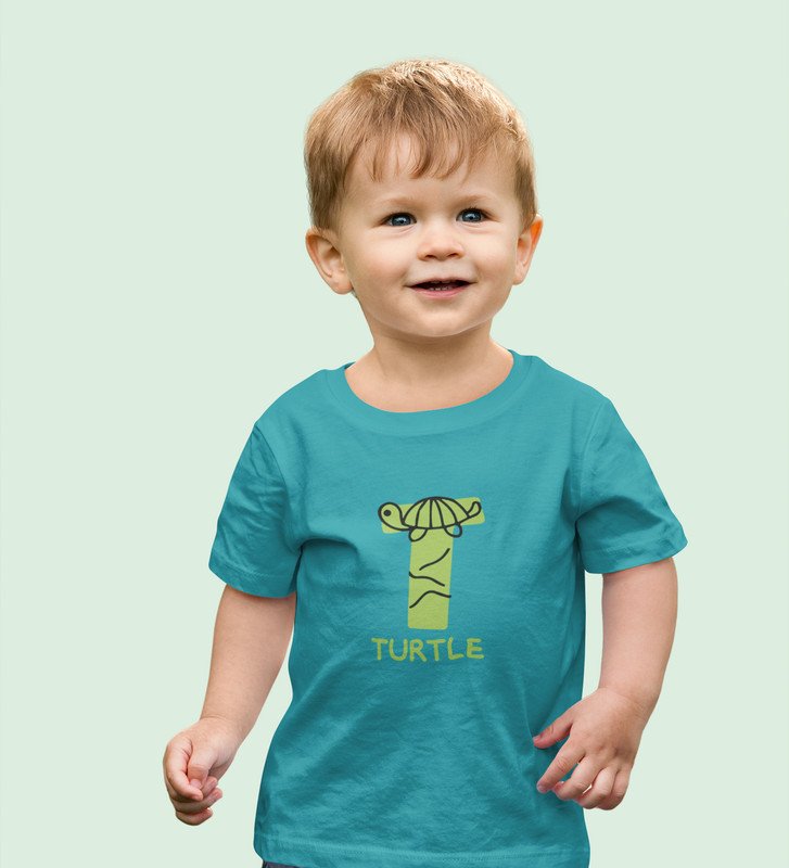 Talking Turtle, Boys Round Neck Printed Blended Cotton tshirt (teal)