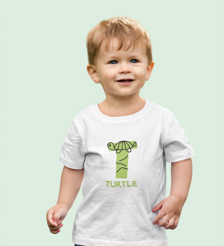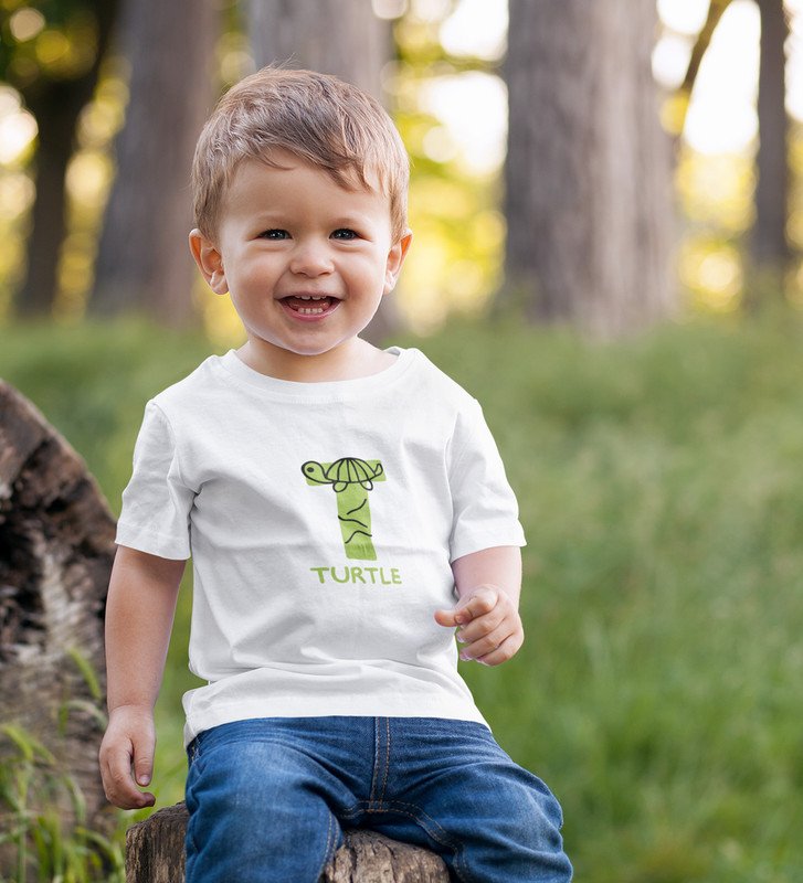 Talking Turtle, Boys Round Neck Printed Blended Cotton tshirt (white)