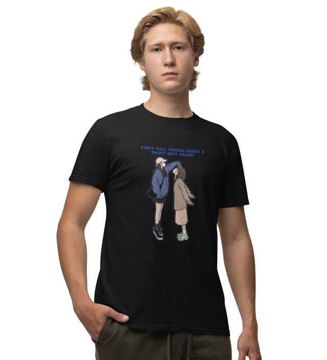Tall And Short Duo Black Round Neck Cotton Half Sleeved Men T Shirt with Printed Graphics
