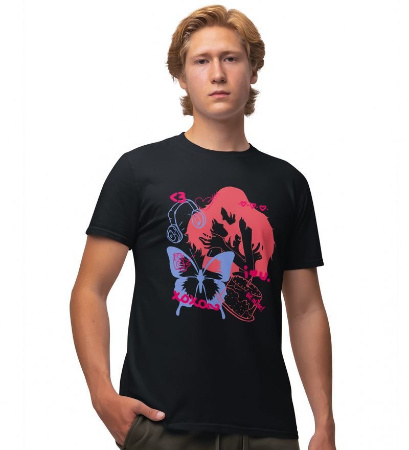 Tangled Souls Round Neck Half Sleeves Black Printed Graphic T Shirt