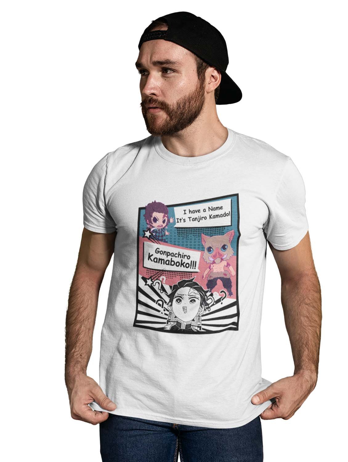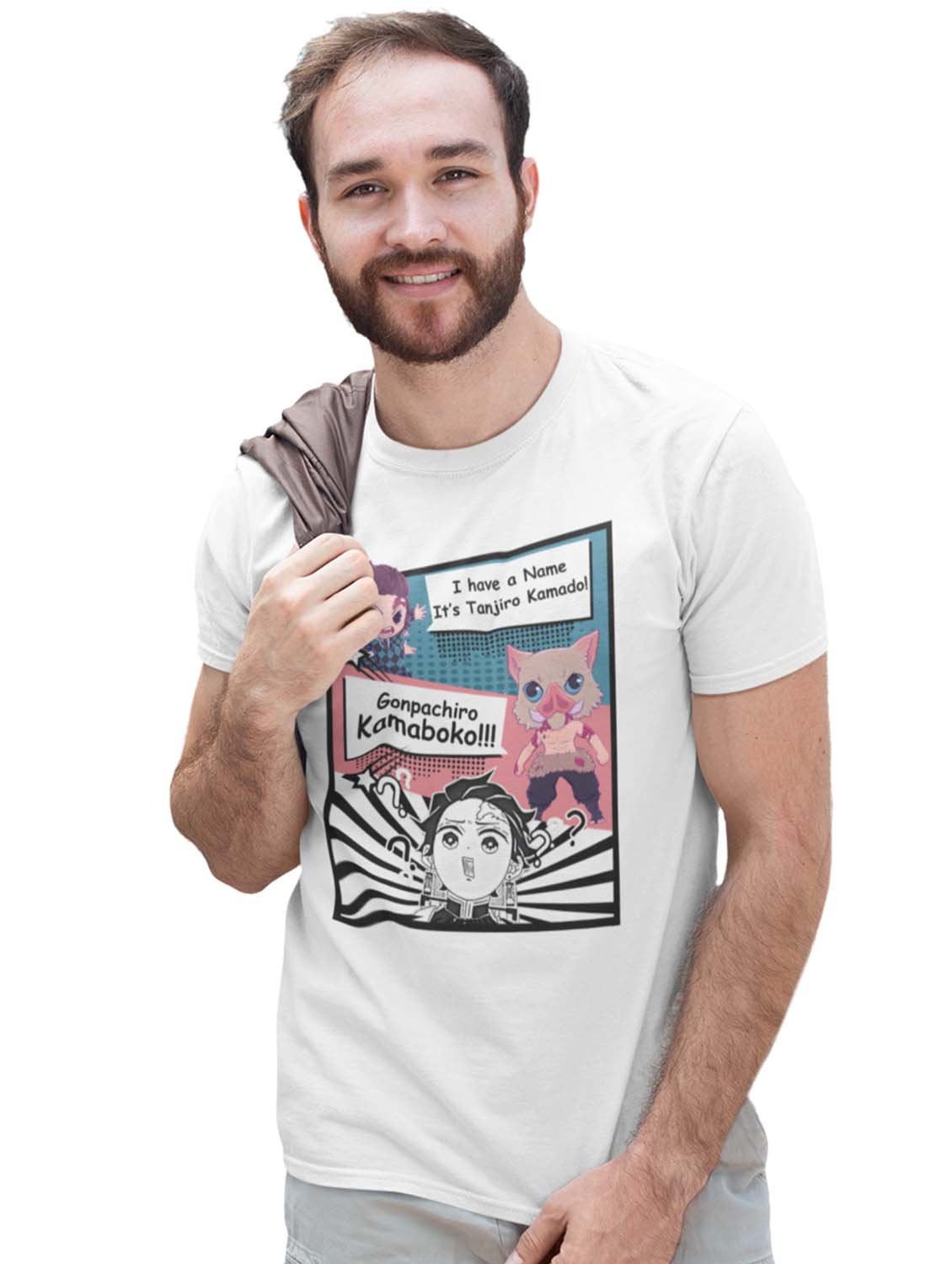 Tanjiro x Inosuke - White printed cotton t-shirt - Comfortable and Stylish Tshirt