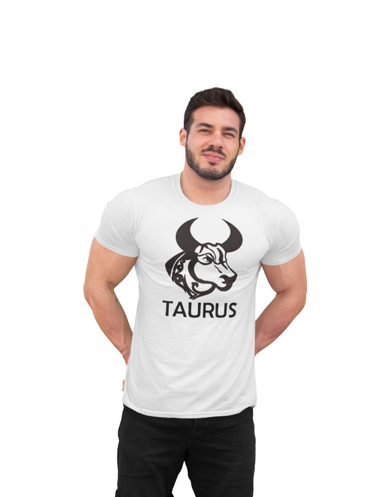 Taurus (BG Black) (White T) - Printed Zodiac Sign Tshirts - Made especially for astrology lovers people