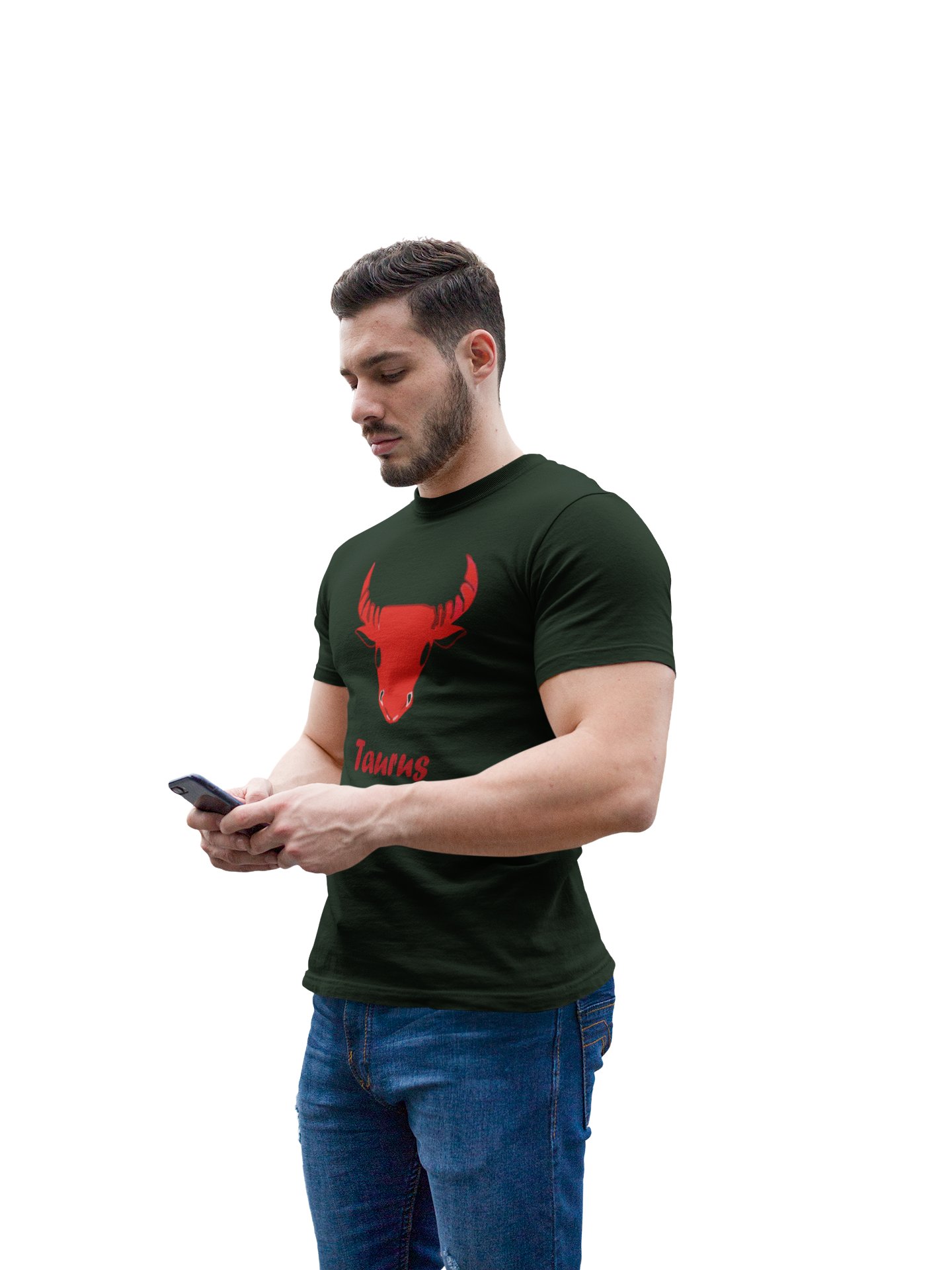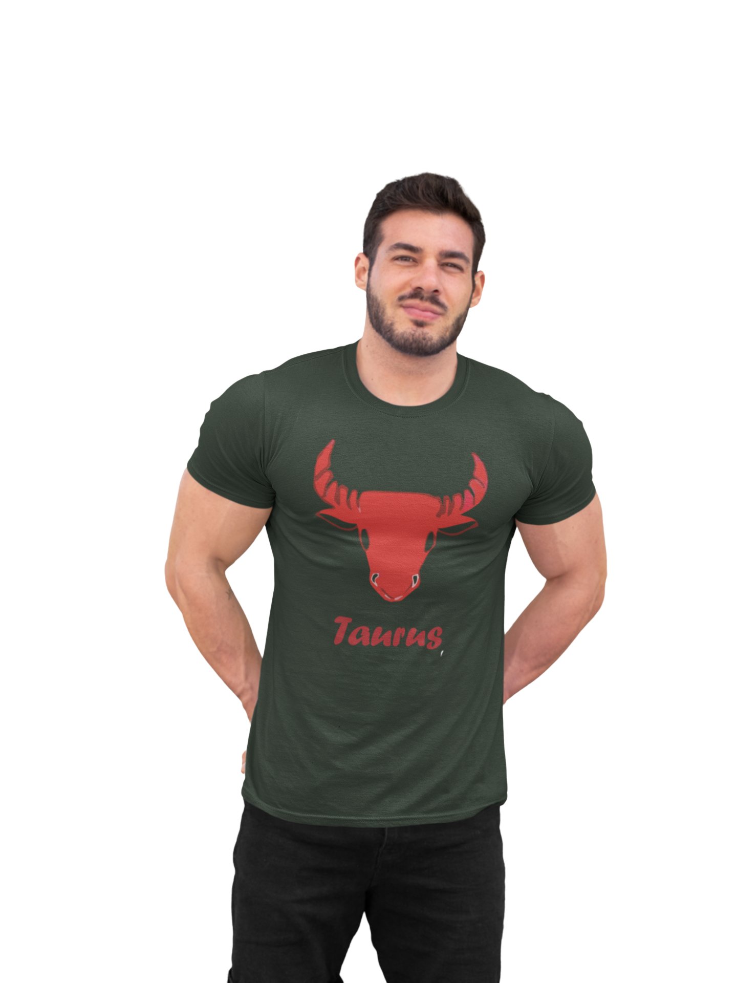 Taurus (BG Red) (Green T) - Printed Zodiac Sign Tshirts - Made especially for astrology lovers people