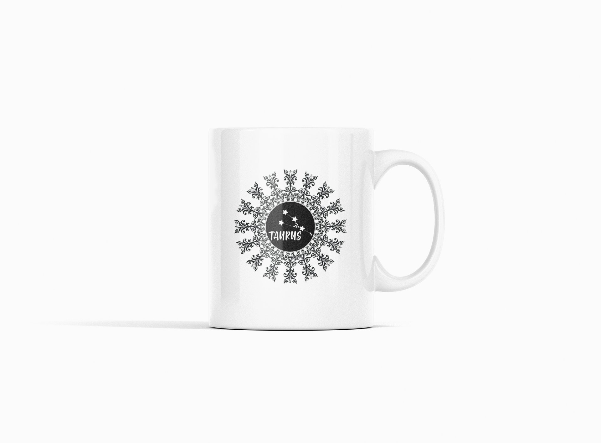 Taurus mandala - zodiac themed printed ceramic white coffee and tea mugs/ cups for astrology lovers