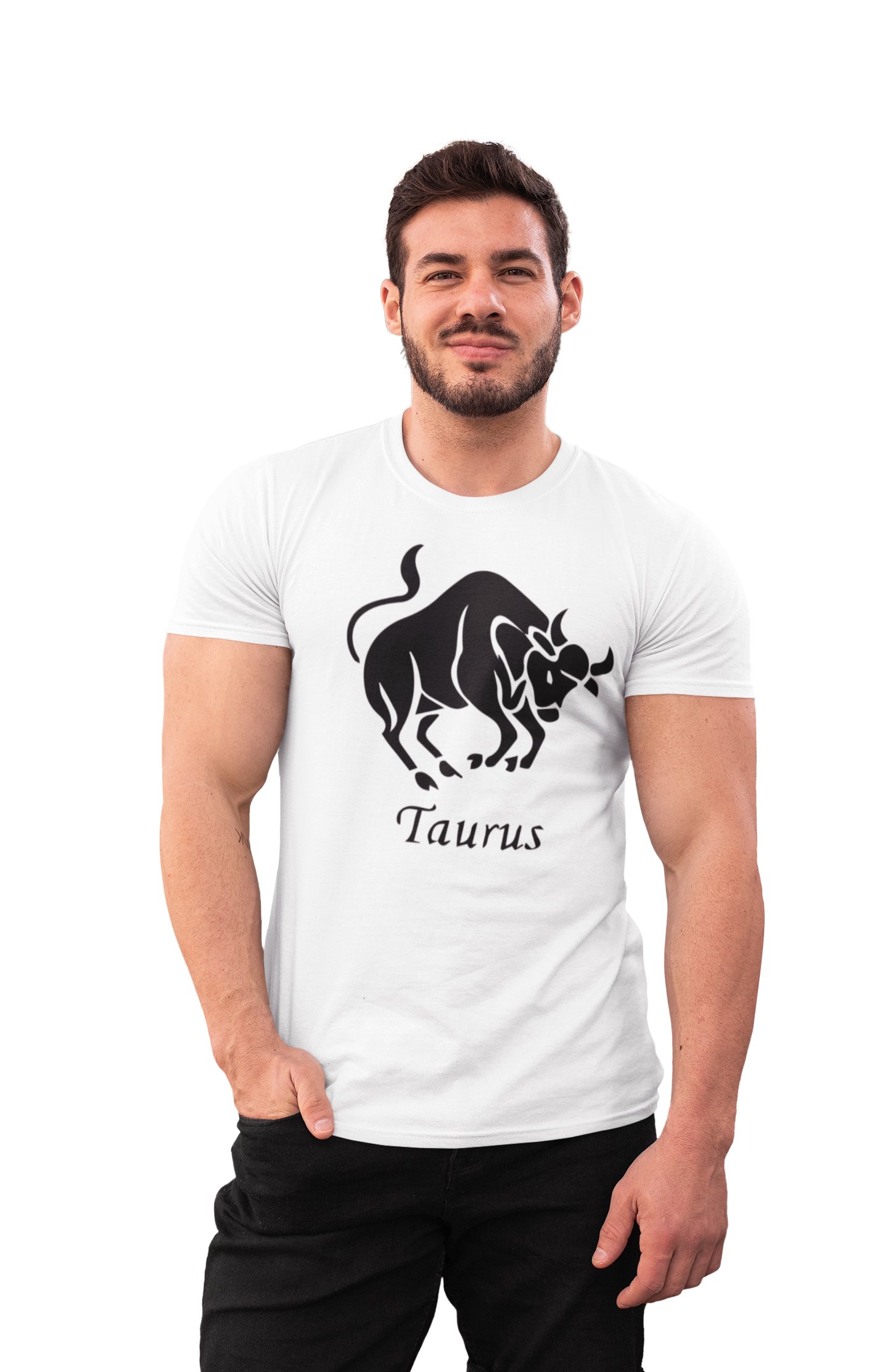 Taurus symbol (BG Black) (White T) - Printed Zodiac Sign Tshirts - Made especially for astrology lovers people