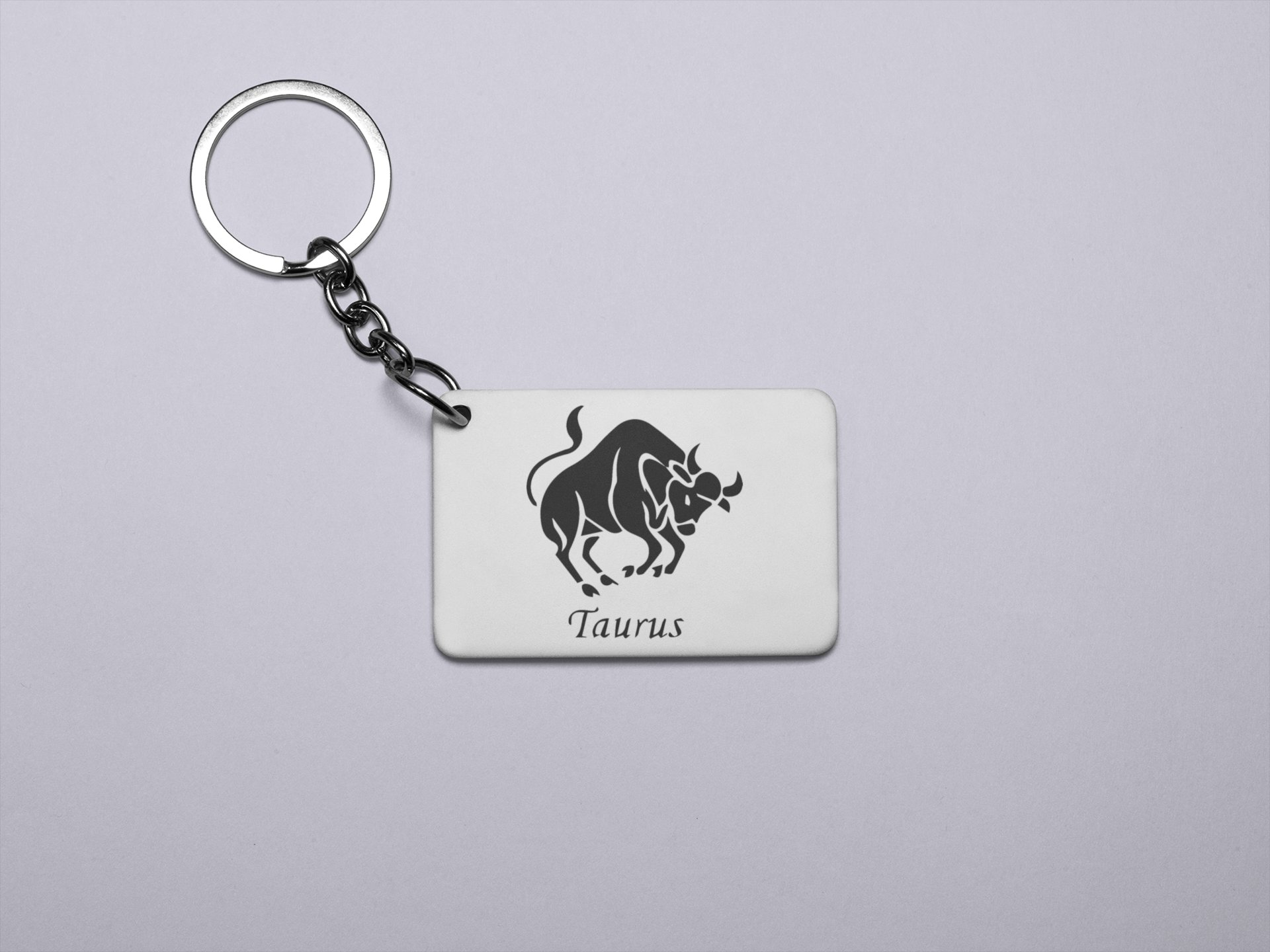 Taurus symbol (BG Black) - Zodiac Sign Printed Keychains For Astrology Lovers(Pack of 2)