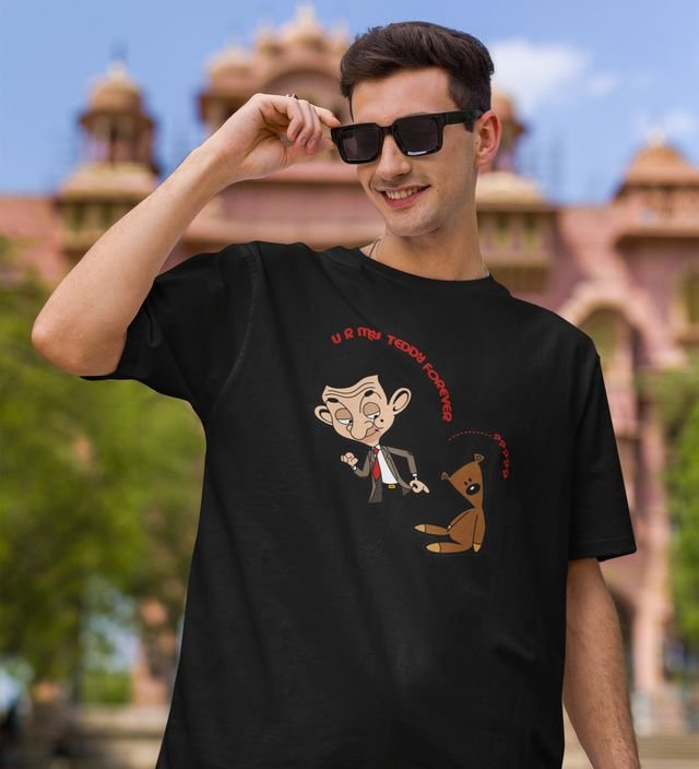 Teddy And The Bean Black Round Neck Cotton Half Sleeved Men T Shirt with Printed Graphics