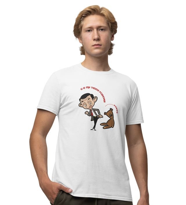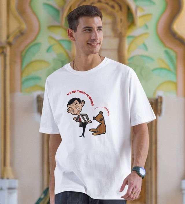 Teddy And The Bean White Round Neck Cotton Half Sleeved Men T Shirt with Printed Graphics