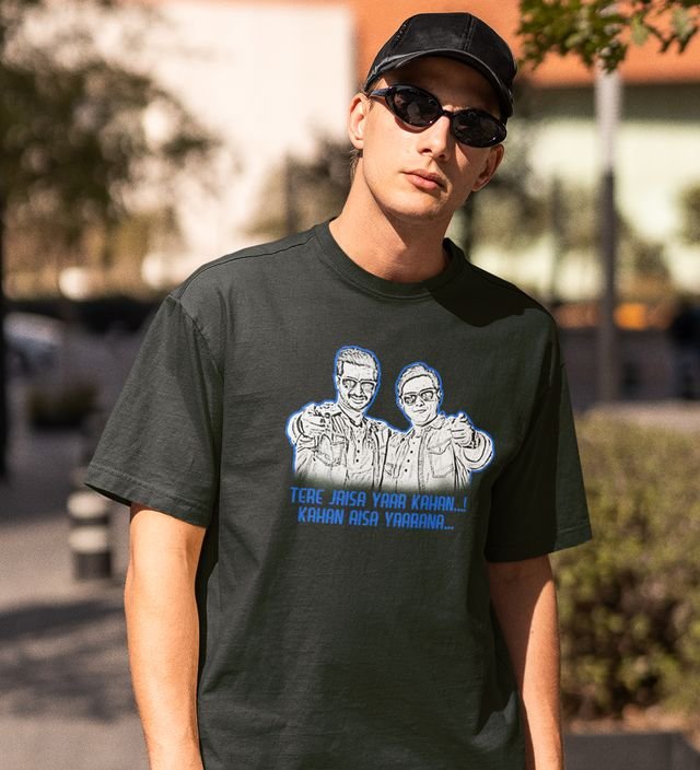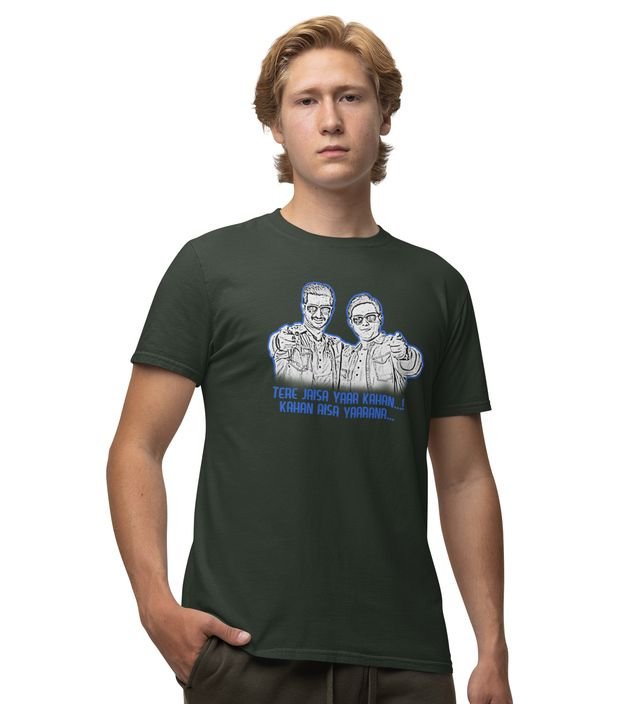 Tere Jaisa Yaar Green Round Neck Cotton Half Sleeved Men T-Shirt with Printed Graphics