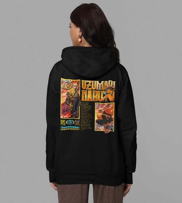 The 7th Hokage and the Protector of the Hidden Leaf Printed Black Cotton Hoodie For Women
