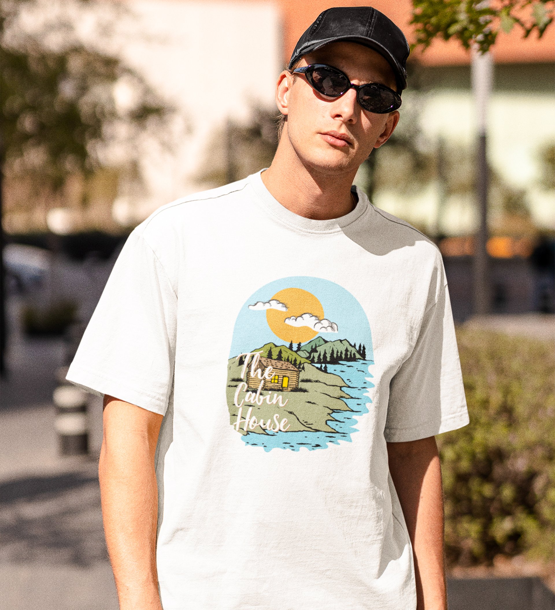 JD.TRENDS The Cabin House White Round Neck Cotton Half Sleeved Men's T-Shirt with Printed Graphics