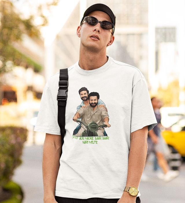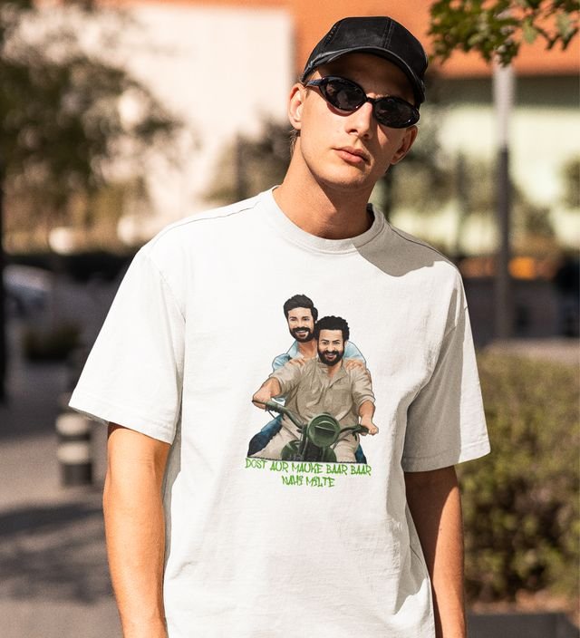 The Chance Of Friendship White Round Neck Cotton Half Sleeved Men T-Shirt with Printed Graphics