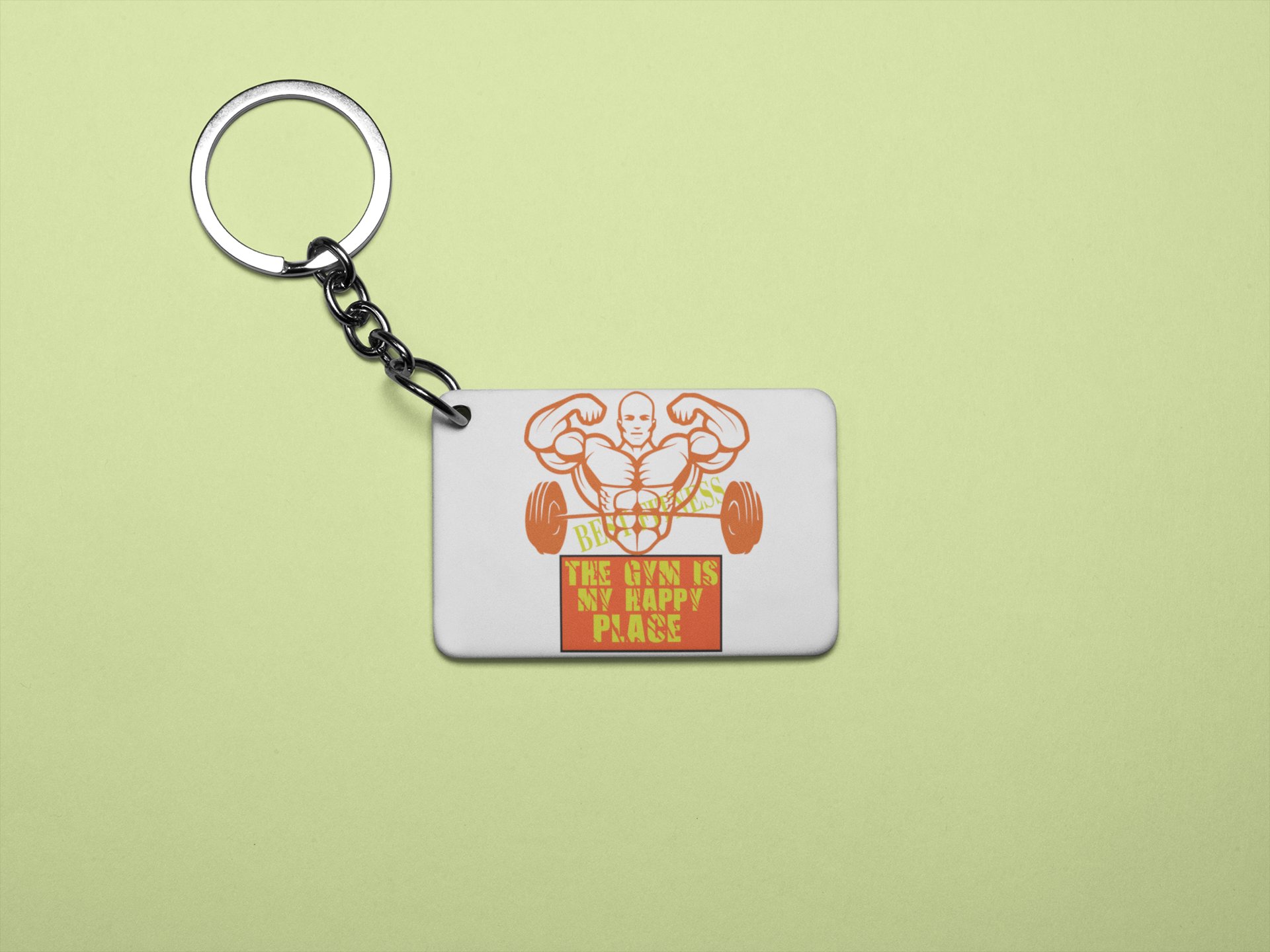 The Gym Is My Happy Place, (BG Orange) - Printed Keychains for gym lovers(Pack of 2)