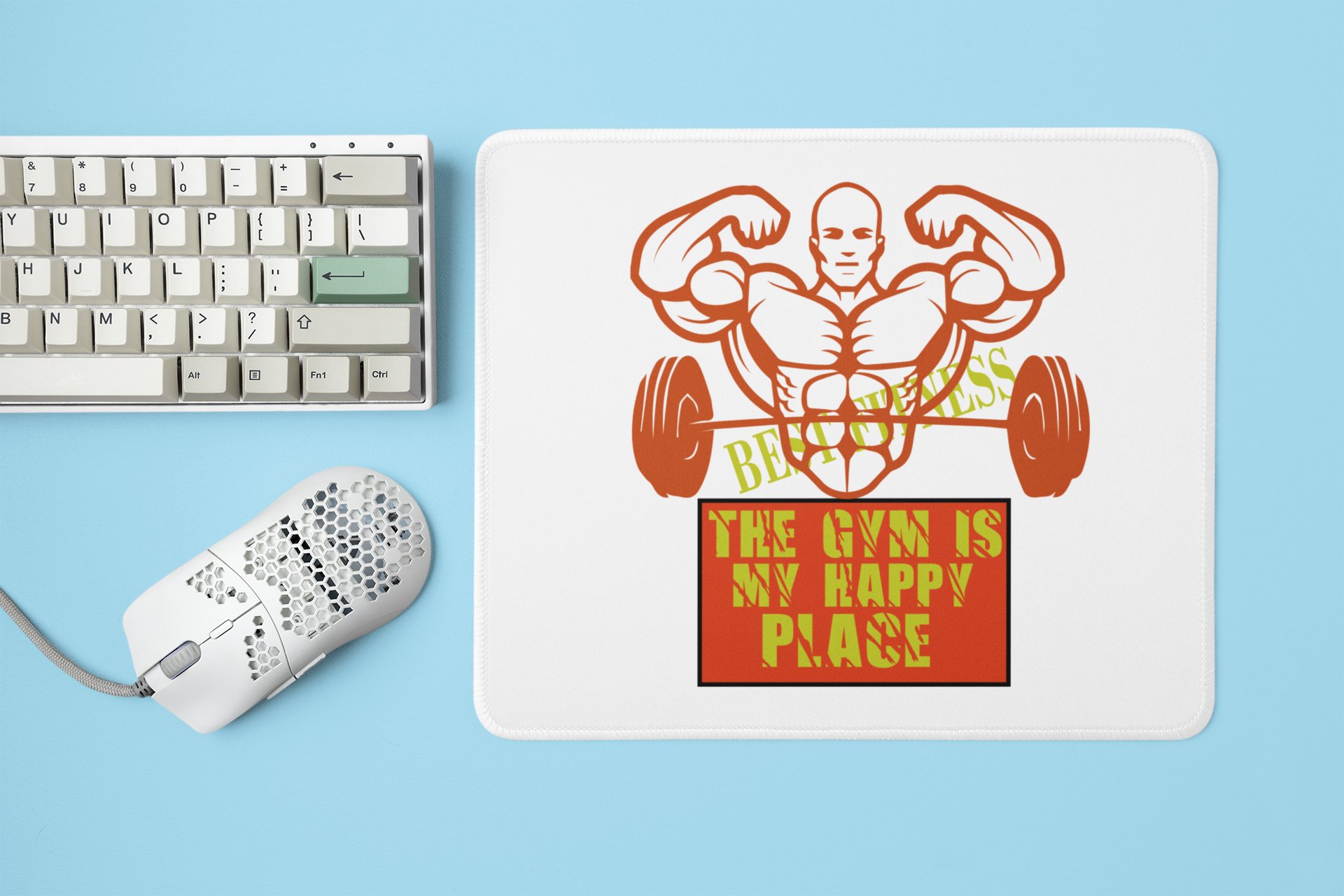The Gym Is My Happy Place, (BG Orange) - Printed Mousepads For Gym Lovers