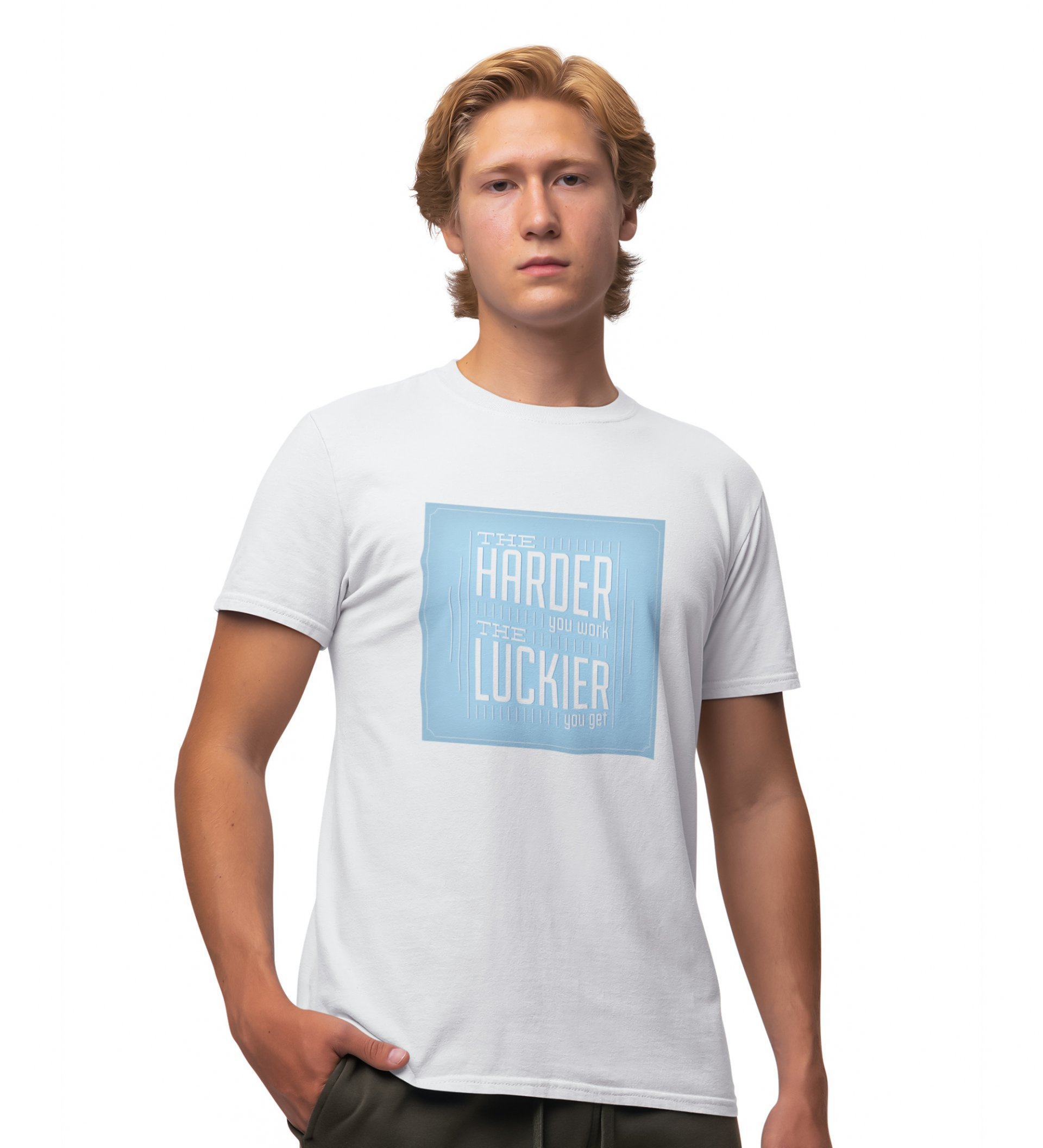 Luck Comes With Hardwork White Round Neck Cotton Half Sleeved Men's T-Shirt with Printed Graphics