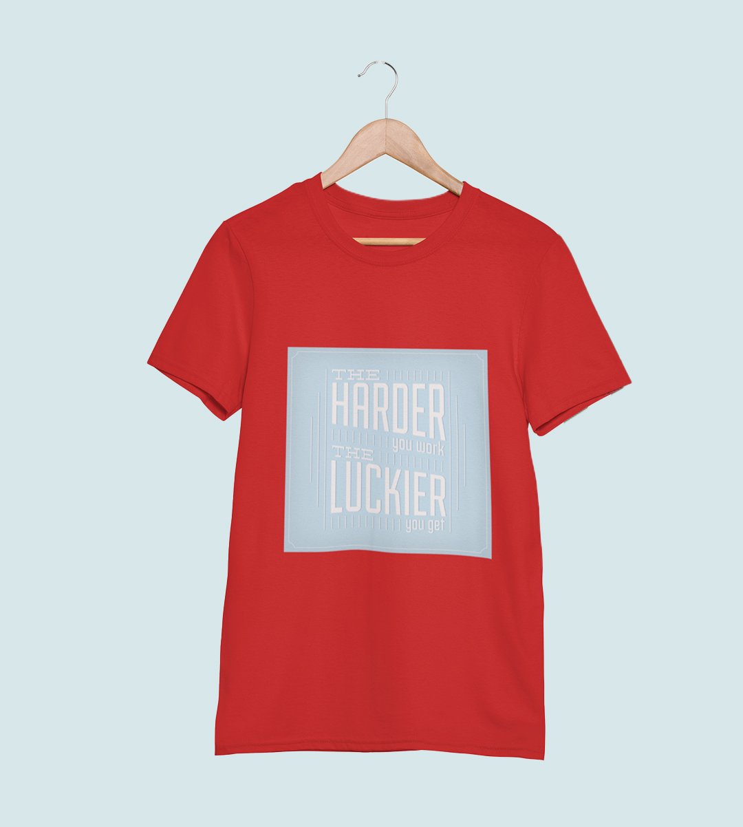 The harder you work the luckier you get Printed Tees for men - super comfy - designed for fun and creative atmosphere around you - youth oriented design