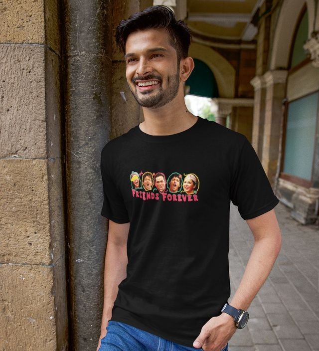 The Iconic Friendship Black Round Neck Cotton Half Sleeved Men T Shirt with Printed Graphics