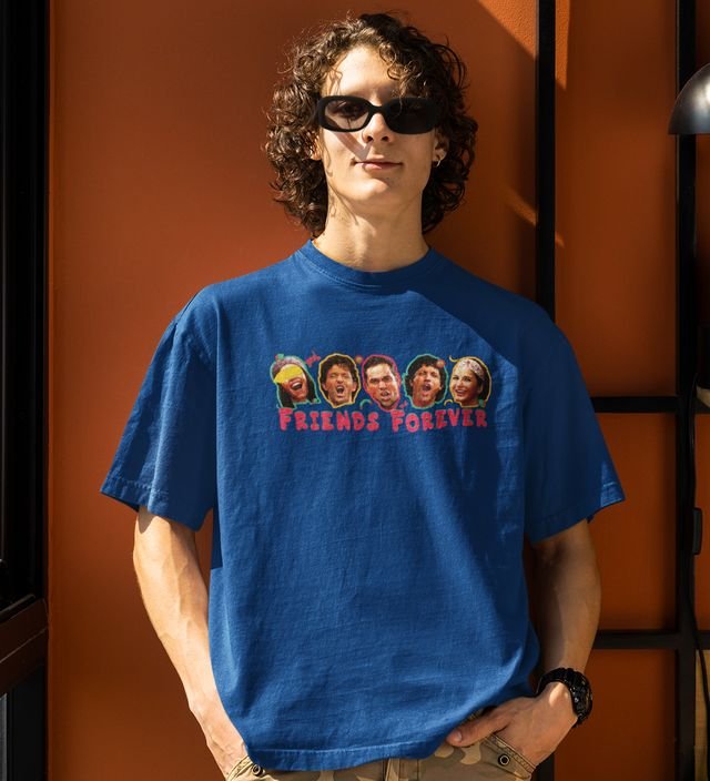 The Iconic Friendship Blue Round Neck Cotton Half Sleeved Men T Shirt with Printed Graphics