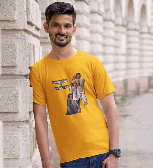 The Idiots Life Yellow Round Neck Cotton Half Sleeved Men T Shirt with Printed Graphics