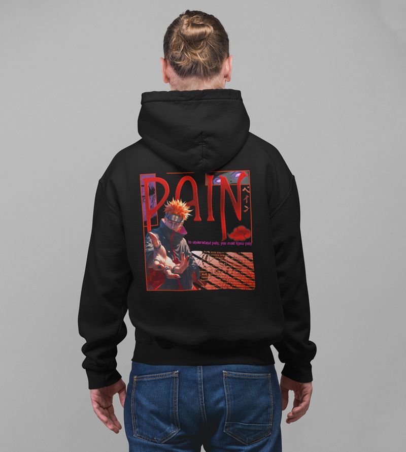 The Leader of Akatsuki with a Vision for Peace Printed Black Cotton Hoodie For Men