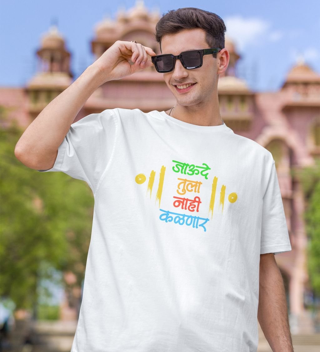 Dive into the essence of Marathi hangout spots with our Marathi Slangs T Shirt Collection This stylish tee featuring trendy graphics and Marathi script is made from premium cotton for a comfortable fit It