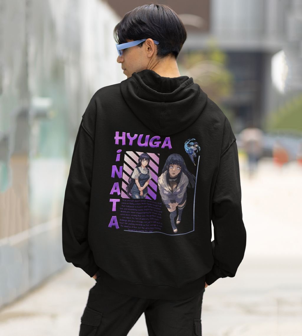 The Moon Princess and Gentle Heroine of the Hidden Leaf Printed Black Cotton Hoodie For Men