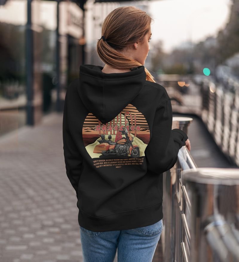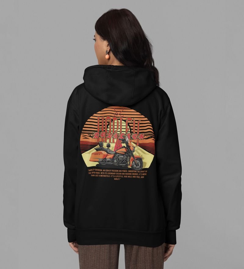 The Open Road Awaits Iconic Cruiser Printed Black Hoodie for Women