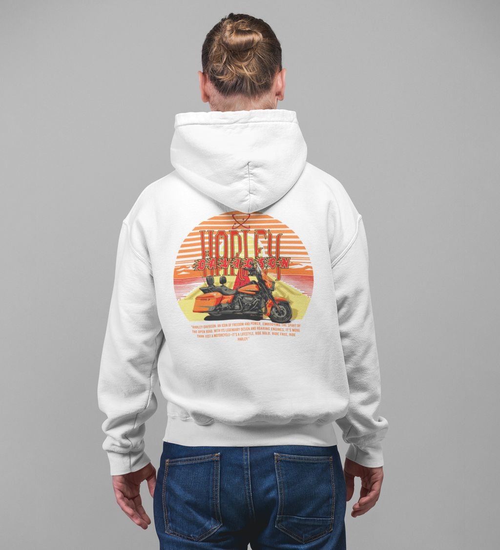 The Open Road Awaits Iconic Cruiser Printed White Hoodie for Men
