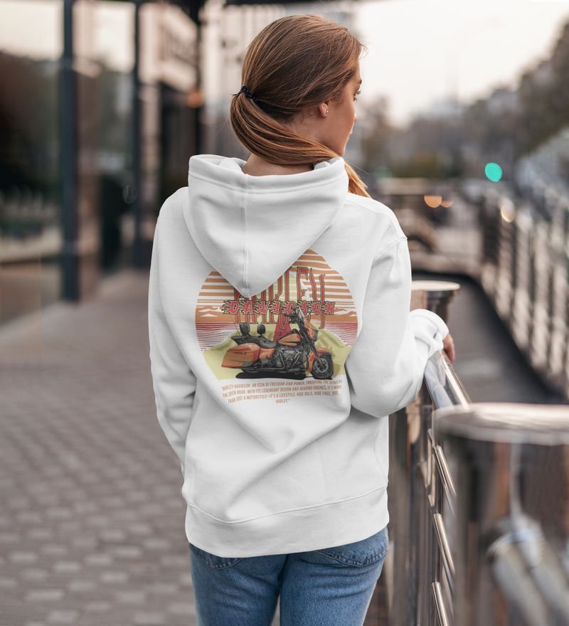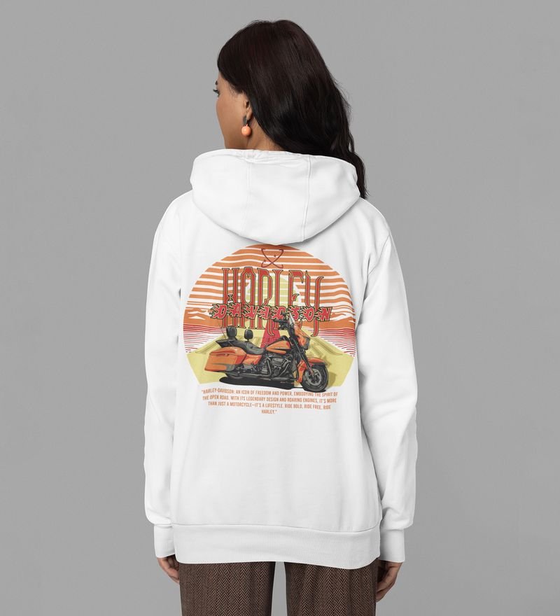 The Open Road Awaits Iconic Cruiser Printed White Hoodie for Women