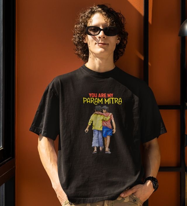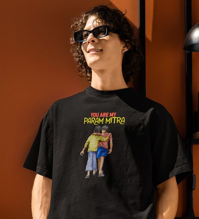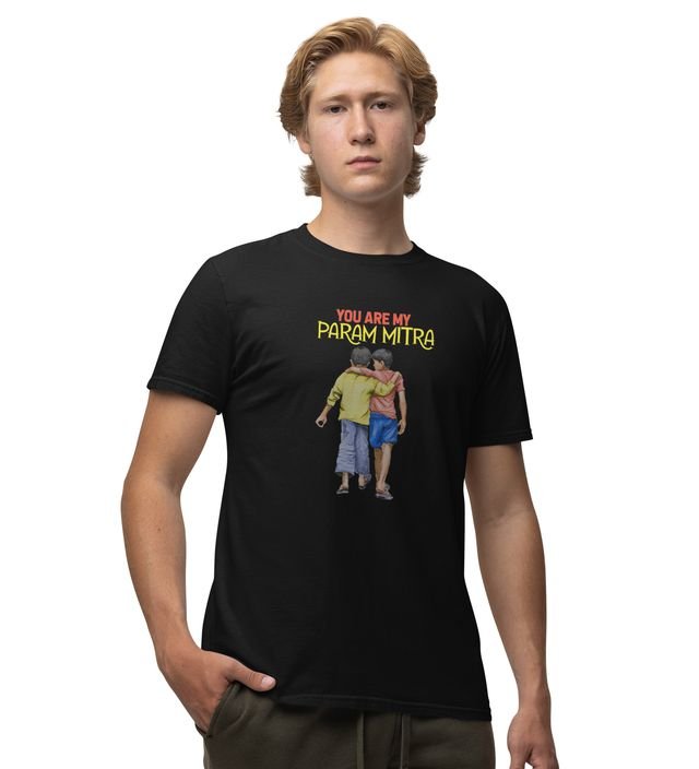 The Param Mitra Black Round Neck Cotton Half Sleeved Men T-Shirt with Printed Graphics