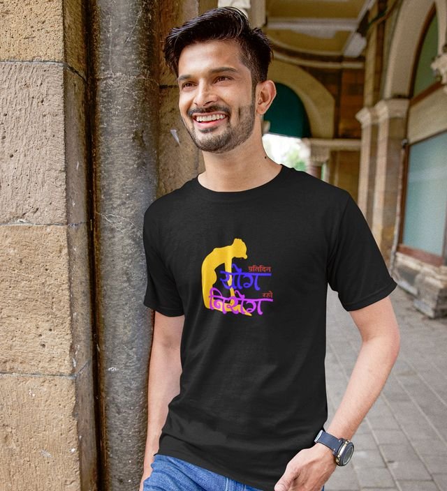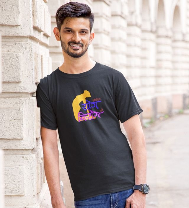 The Path To Niroga Black Round Neck Cotton Half Sleeved Men T-Shirt with Printed Graphics