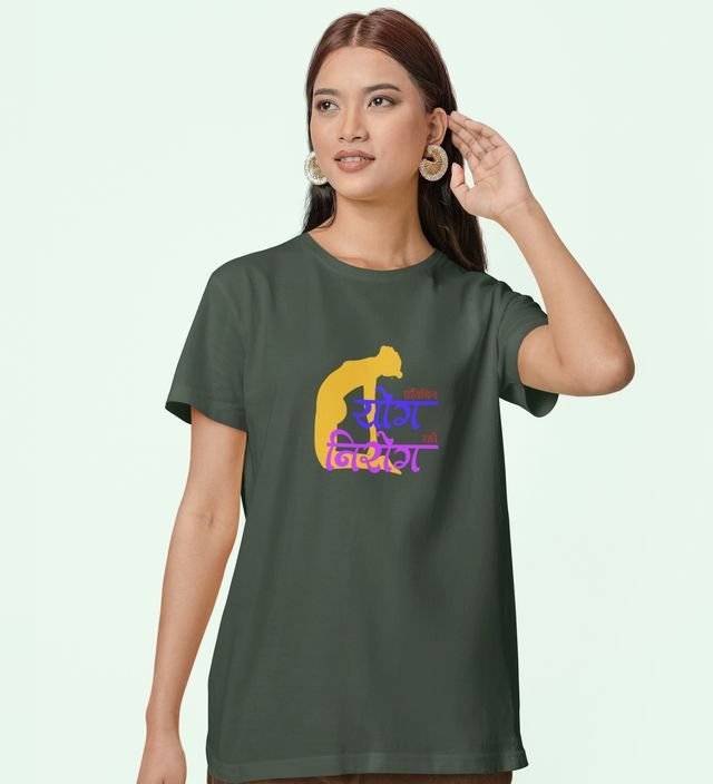 The Path To Niroga Green Round Neck Cotton Half Sleeved Women T-Shirt with Printed Graphics