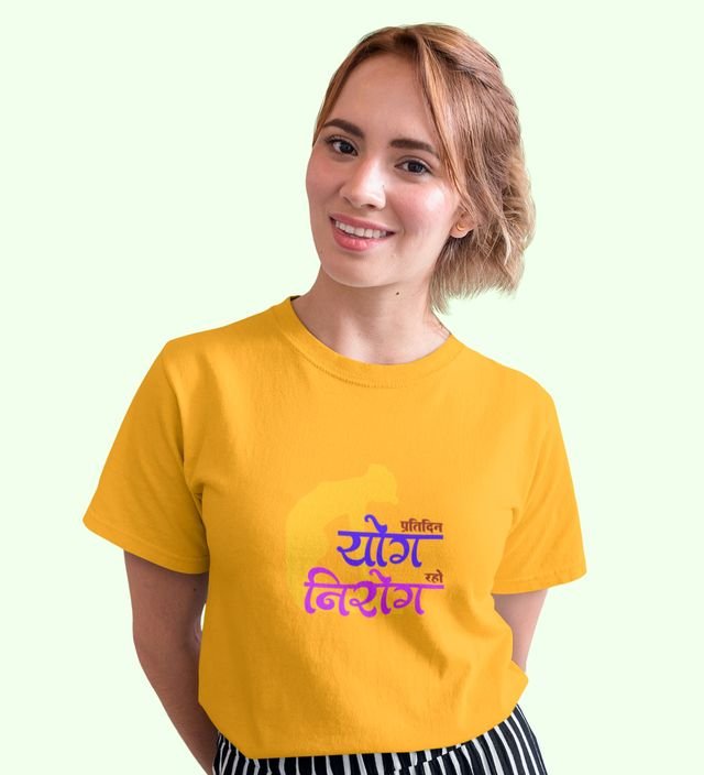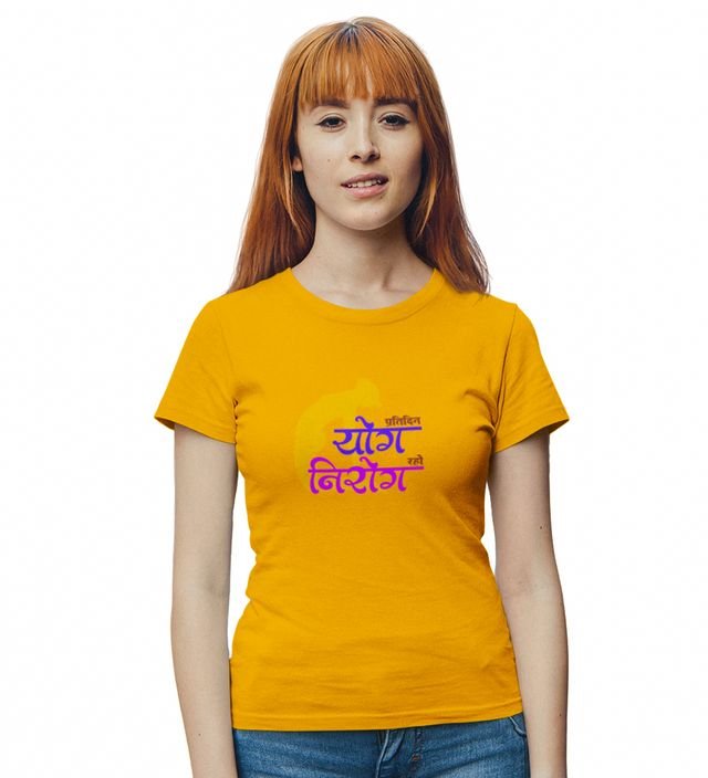 The Path To Niroga Yellow Round Neck Cotton Half Sleeved Women T-Shirt with Printed Graphics