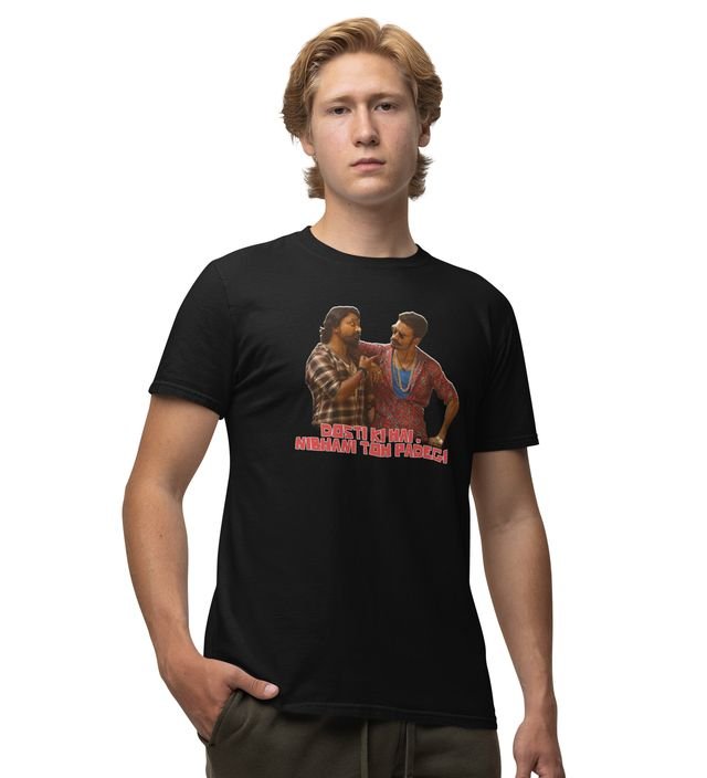 The Power Duo Black Round Neck Cotton Half Sleeved Men T-Shirt with Printed Graphics