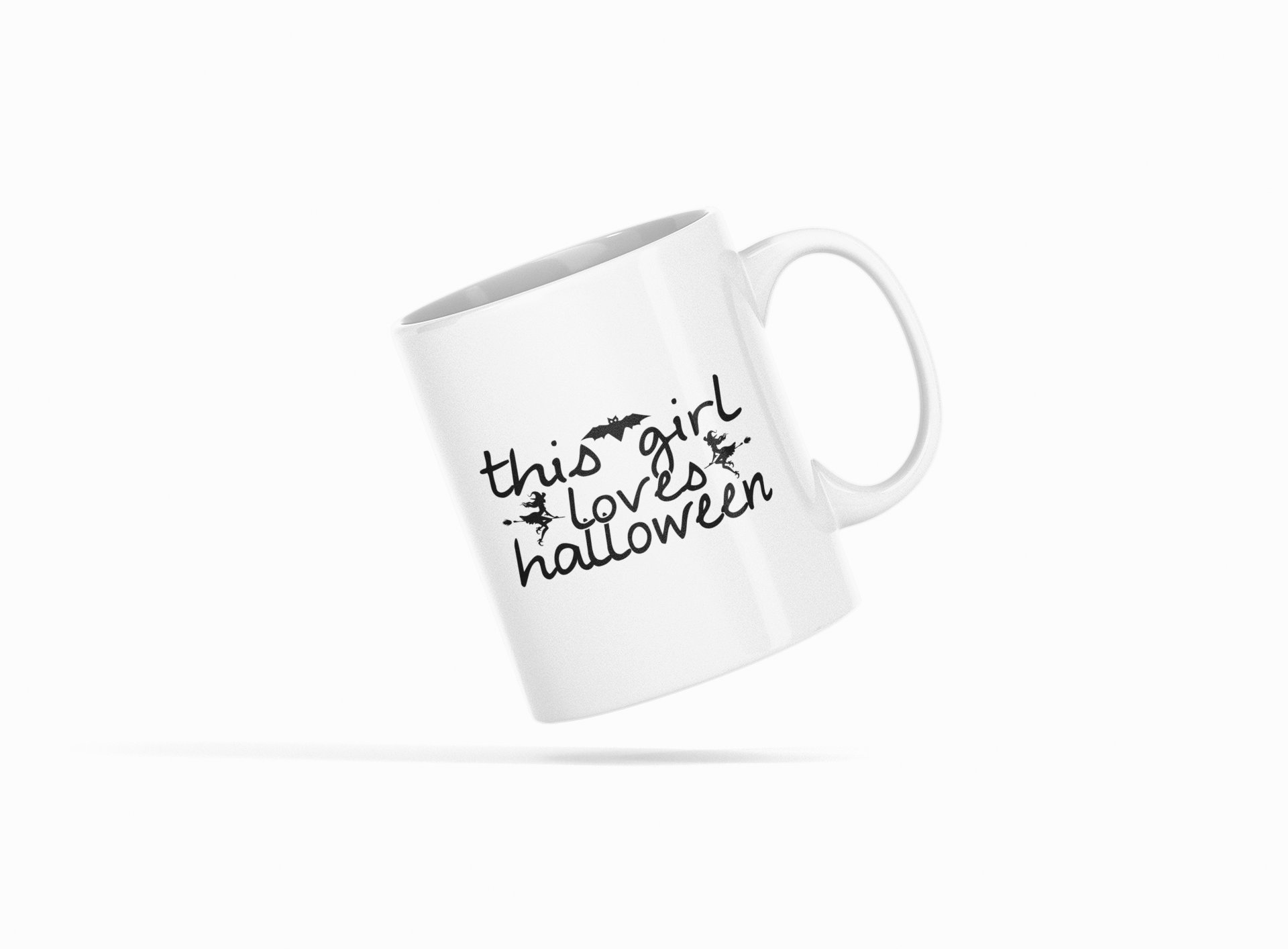This Girl Loves Halloween Black Text-Halloween Themed Printed Coffee Mugs